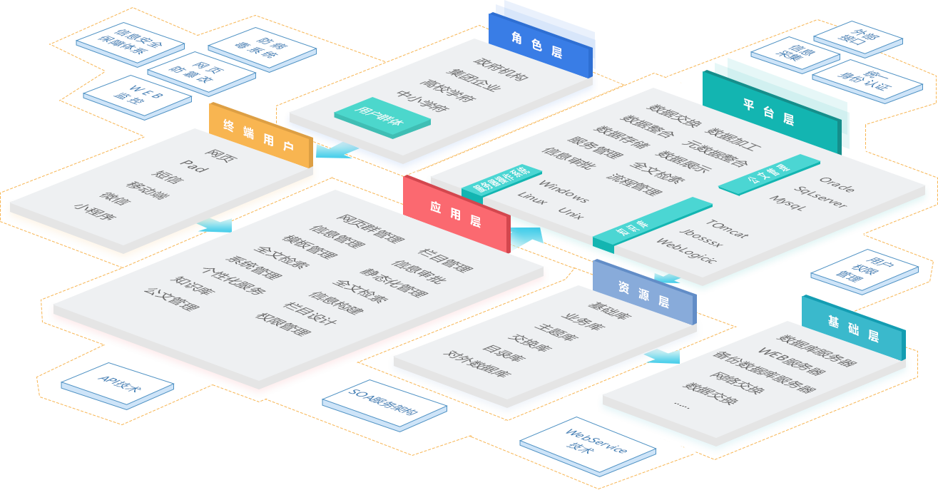 - 元數據管理、多維分類(lèi)管理、復雜流程審批、網(wǎng)上辦事、場(chǎng)景服務(wù)、資源目錄服務(wù)、網(wǎng)站SAAS服務(wù)
