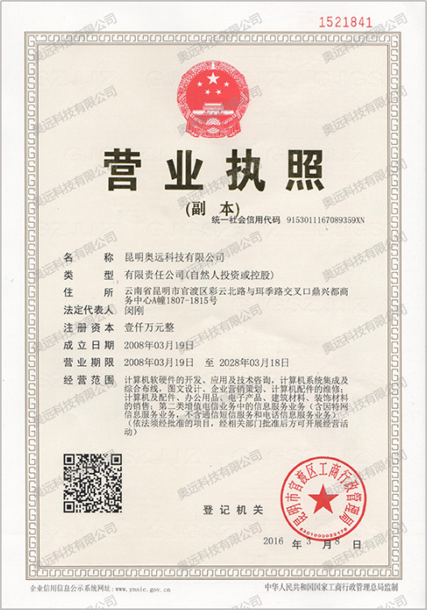 昆明奧遠科技有限公司成立于2008年,注冊資金1000萬(wàn)元,是一家專(zhuān)業(yè)從事系統開(kāi)發(fā)、網(wǎng)站建設、移動(dòng)端應用(wap、微信、APP)、新媒體推廣運營(yíng)等互聯(lián)網(wǎng)業(yè)務(wù)的高新科技企業(yè),是國內率先的“互聯(lián)網(wǎng)+”解決方案提供商。公司秉承著(zhù)“為客戶(hù)創(chuàng )造價(jià)值!”的經(jīng)營(yíng)理念,已為眾多品牌企業(yè)搭建好有效的互聯(lián)網(wǎng)平臺,推動(dòng)企業(yè)輕松跨入“互聯(lián)網(wǎng)+”時(shí)代,是中國西南地區頗具影響力的信息化建設公司之一。