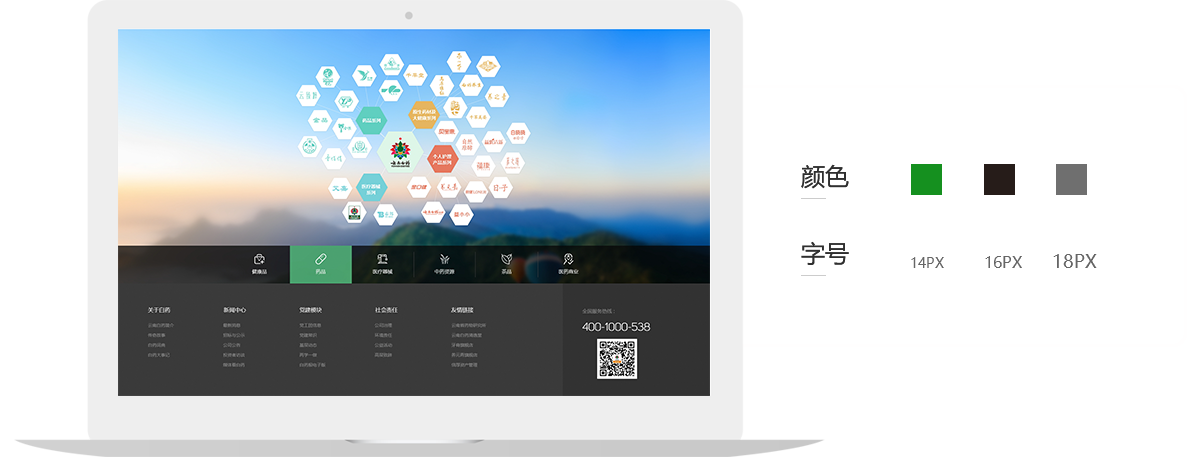 針對本次官網(wǎng)設計,除了介紹公司的基本情況外,更多的是展示產(chǎn)品和歷史傳承方面,以“新白藥、大健康”為核心注重強化其品牌概念以及公司優(yōu)勢,布局方面,采用了在國際化設計中較為流行的扁平化布局風(fēng)格,內容呈現上疏密有使整個(gè)頁(yè)面更簡(jiǎn)約、直觀(guān),卻不失內容和主題的完整。