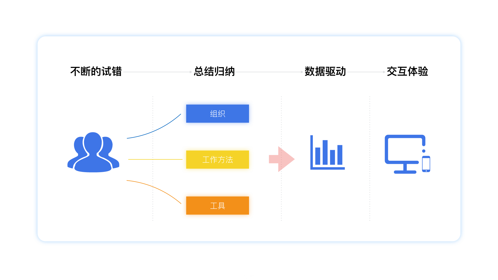 多數人能夠成為很厲害的設計師,很厲害的產(chǎn)品經(jīng)理。凡事都會(huì )有所謂的套路,當你熟知了解某個(gè)行業(yè),或者多個(gè)行業(yè)的套路時(shí)。你會(huì )站在更高的視角看待問(wèn)題,同樣你會(huì )走的比人家更遠更快。所謂的套路,是基于個(gè)人而言,可能你有個(gè)很好的導師能夠告訴你以往的經(jīng)驗。但是我更認為,套路是通過(guò)一步步看似笨拙的努力不斷總結不斷歸納。
